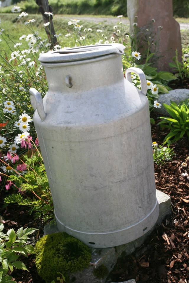 RÅVARER: Høy kvalitet på råvarene er noe av hemmeligheten bak ostesuksessen fra Tingvoll. Dette melkespannet som pryder innkjørselen er en liten påminnelse om at det. (Foto: Arne Storrønningen)